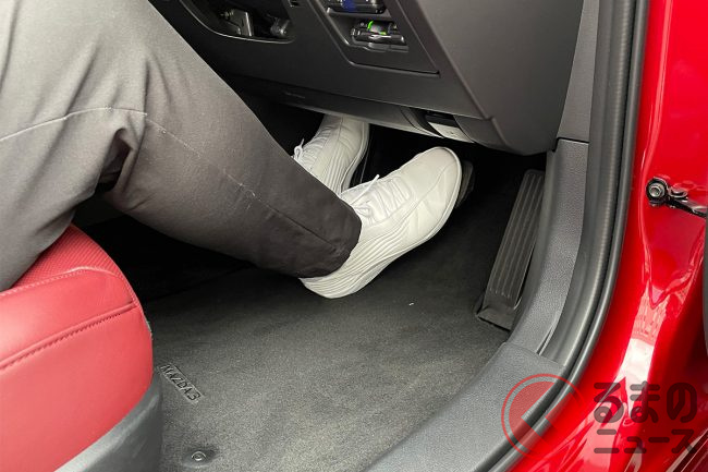そのベアクラッチの発売にあたっては、これを履いて実際にクルマを運転してみようという主旨の試乗会も開催されました。会場に用意されたクルマは、着座位置の低いコンパクトなスポーツカーであるマツダ「ロードスター」、一般的な乗用車タイプの「マツダ3」、着座位置が高いミニバンの「トヨタアルファード」です。