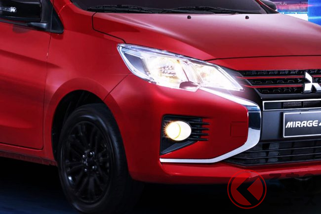 ミラージュG4は、日本でも販売される同社のコンパクトカー「ミラージュ」を3ボックス化した海外専売モデルです。