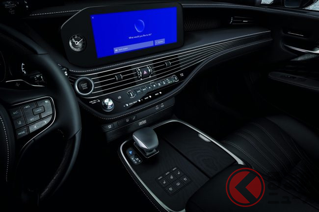 今回、米国で発表された2023年モデルのLSでは、マルチメディアシステムを刷新。12.3インチのタッチスクリーンディスプレイを中心に構成される最新のレクサス・インターフェース・マルチメディアシステムが搭載されます。