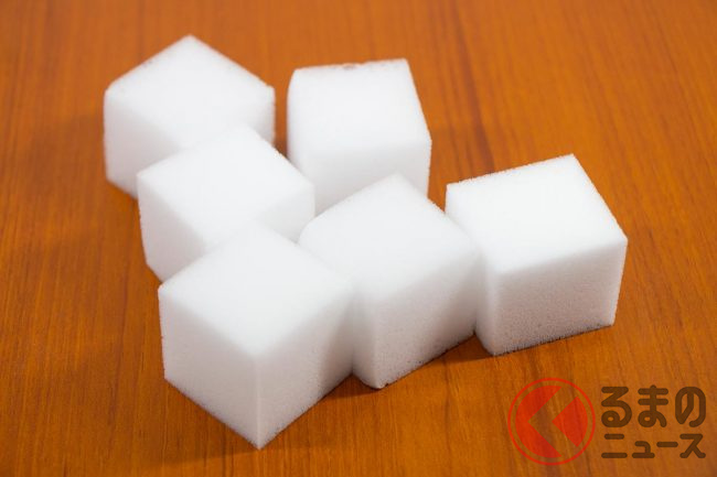 まず考えたのが、「メラミンスポンジ」です。水だけで汚れを落とすと評判で、便利グッズの代表格ともいえる商品。