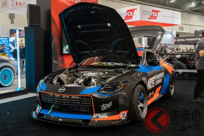 ド派手カラーが凄い新型「フェアレディZ」実車展示! めちゃ速そうなカスタム仕様をお披露目! 米SEMAで話題となったZとは