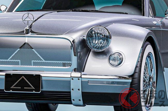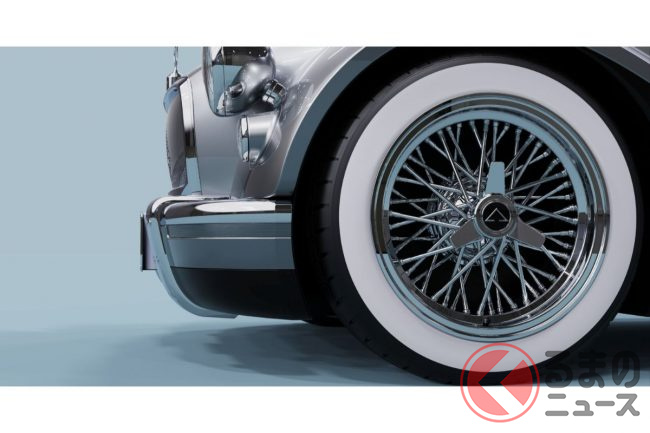 「タイムマシン」と呼ばれるメタリックシルバーの塗装で仕上げられており、ボンネット先端に取り付けられたセンターマスコットやそこからフロントウィンドウまで続くトリム、ワイヤーホイール、ホワイトリングタイヤが古き良き時代の高級車を思わせる雰囲気を漂わせます。