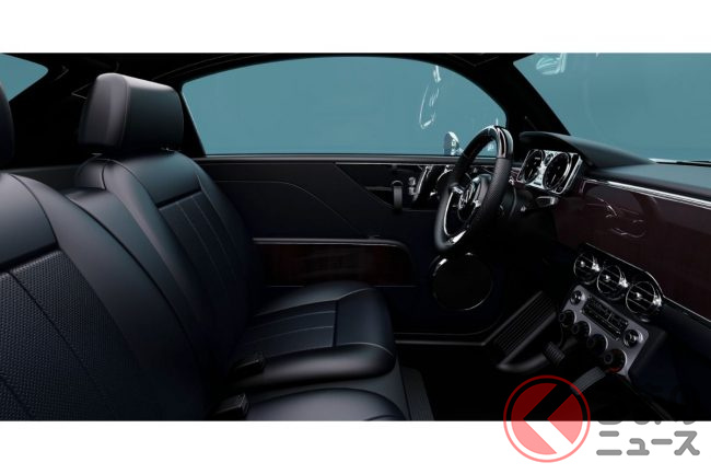 インテリアでは、Spinneybeck社製の最高級レザーが採用された2人乗りの豪華なシートを装備、メーターやダッシュボードはシンプルなデザインに仕上がっていますが、メッキを多用し豪華な印象を持たせています。
