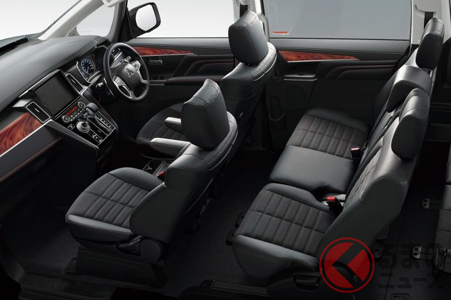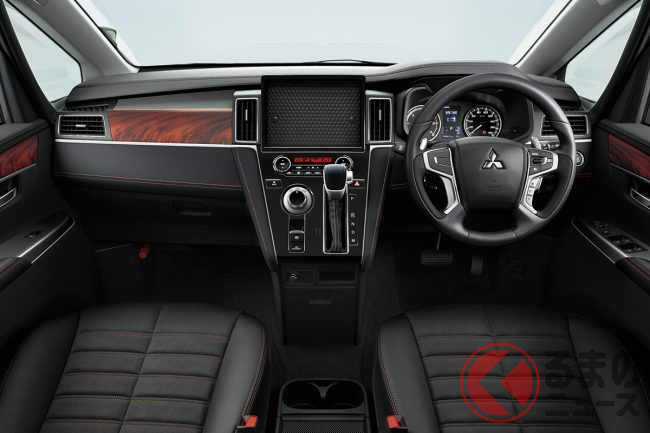 そんなデリカD:5は2019年にビッグマイナーチェンジを受け、内外装デザインを刷新。三菱のデザインコンセプト「ダイナミックシールド」を取り入れた新しいフロントフェイスを採用したほか、ADAS(先進運転支援機能)も充実させました。