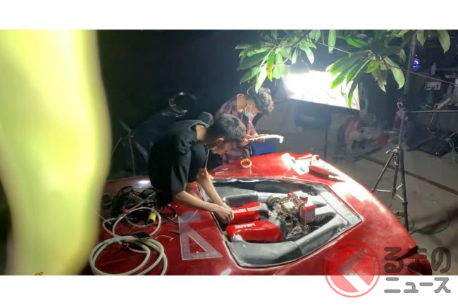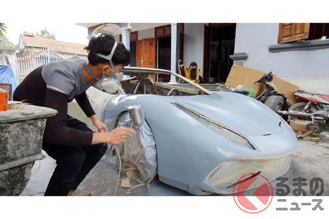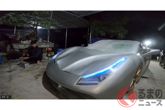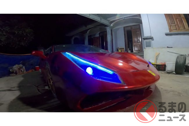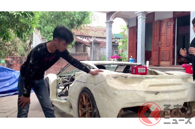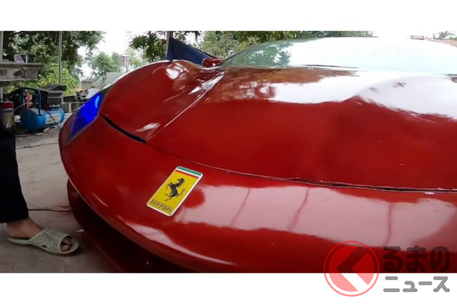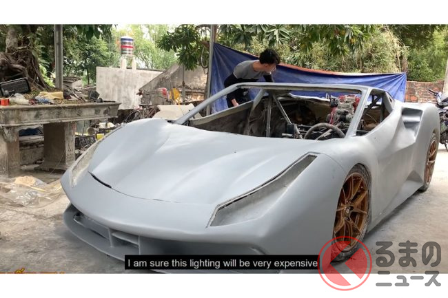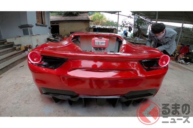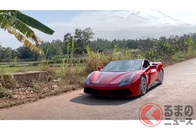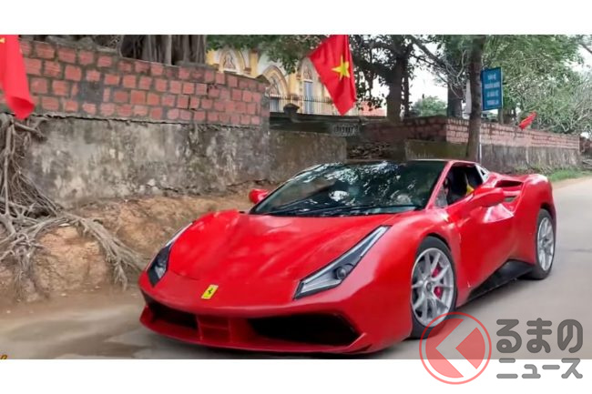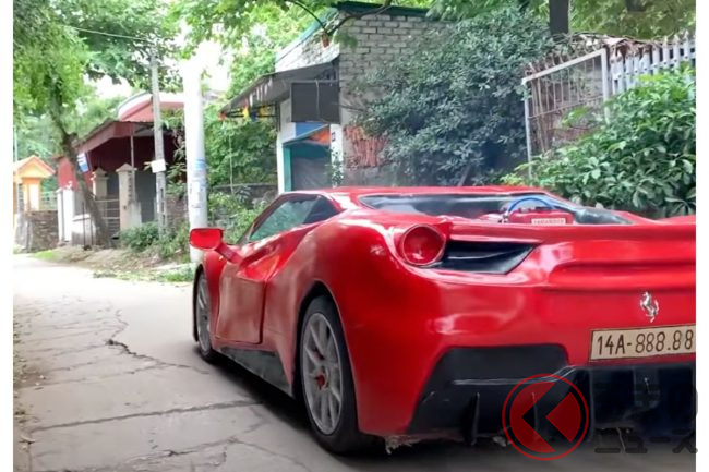 ベトナム(越南)で農家を営むVu Van Nam氏は、ブガッティやランボルギーニなどのスーパーカーを自らの手で再現するユーチューバー。そんなVu Van Nam氏が自作したのは、実車が3000万円超で販売されていたフェラーリ「488GTB」でした。