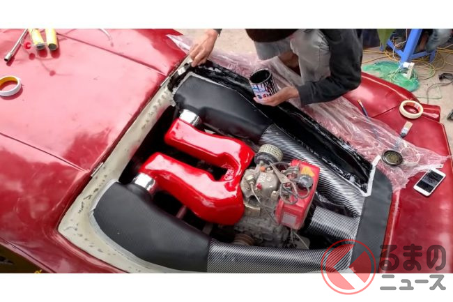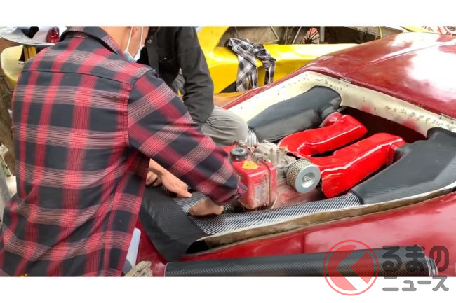 ホンモノよりカッコイイ!? 300ccエンジン搭載の自家製「フェラーリ」に称賛の声! 越農家が再現した“3000万円超えスーパーカー”がスゴイ