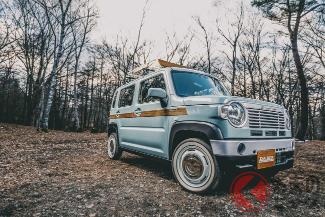 ダムドではそんなハスラー向けには、クラシック&アウトドアテイストを盛り込んだ2種類の異なるコンセプトのボディキット「HUSTLER CARABINA(カラビナ)」と「CLASSICO(クラシコ)」をすでに販売しています。