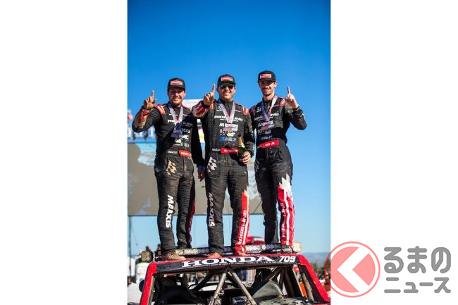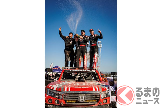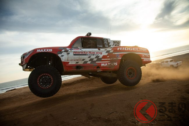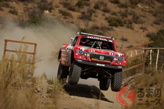 「巨大ホンダ車」が悪路を疾走! 跳ねた!? “爆速リッジライン”がバハ1000で2連覇達成