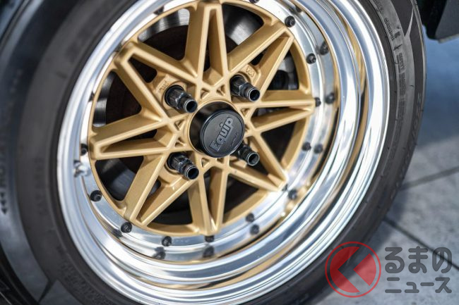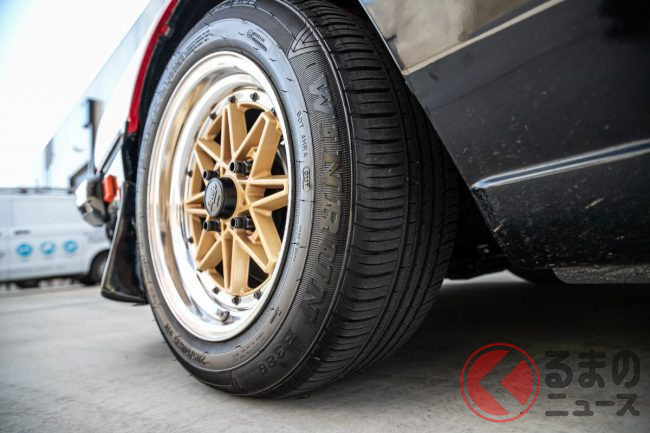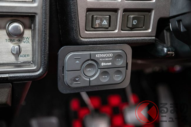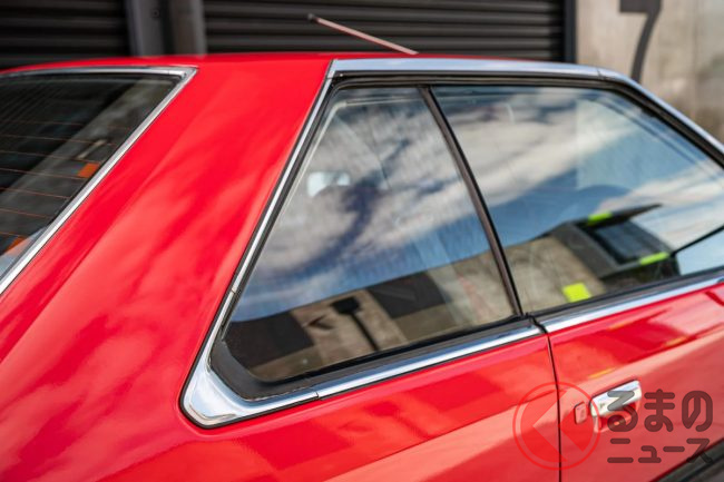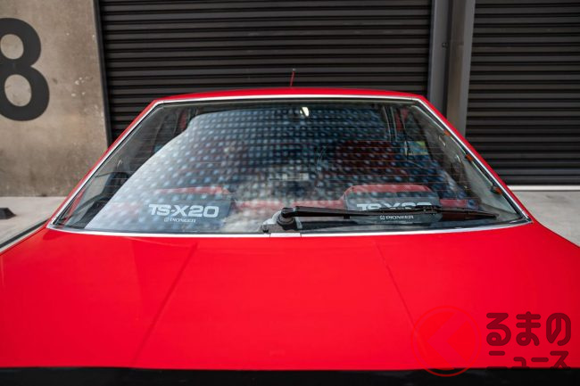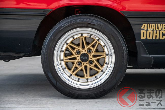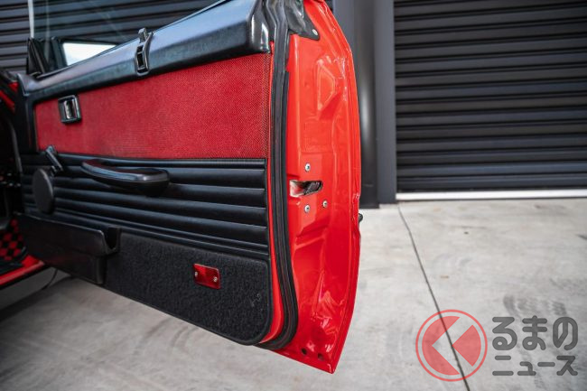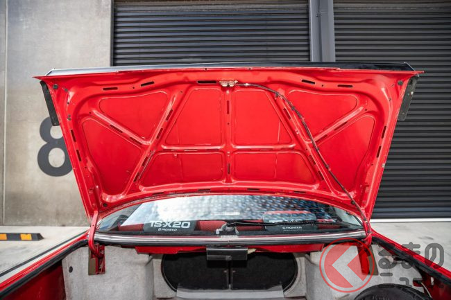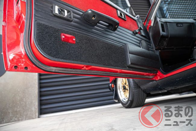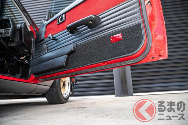 またワーク製の15インチアルミホイールや、新車当時に国内で放映されていたドラマ「西部警察」に登場した特殊車両「マシンRS-1」を思わせる社外品のフロントスポイラーなどでカスタマイズされているのも特徴です。