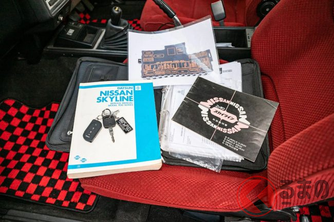また、この出展車には、オーナーズマニュアル、本皮製の純正DR30RSフォルダー、メンテナンスの履歴も付随。