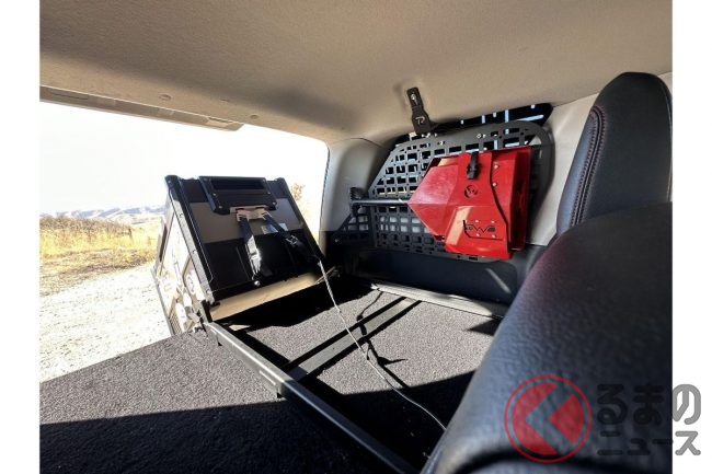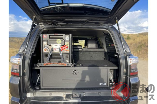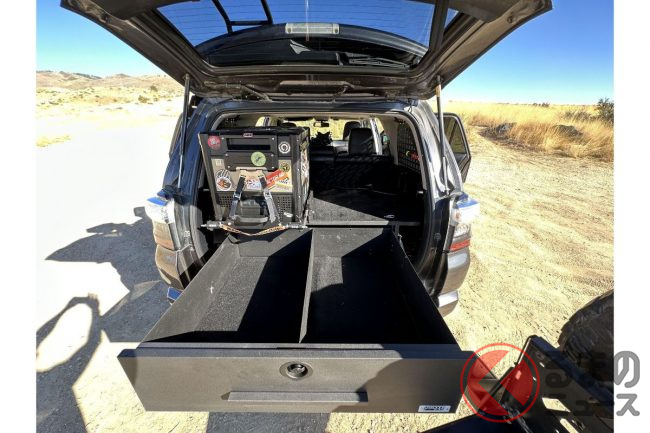 トランクには、BOSS StrongBox社製引き出し収納システムやRago Fabrication社製モジュラーストレージパネル、ARB社製冷蔵・冷凍庫などが積載され、冒険に役立つアイテムが収納可能になっています。