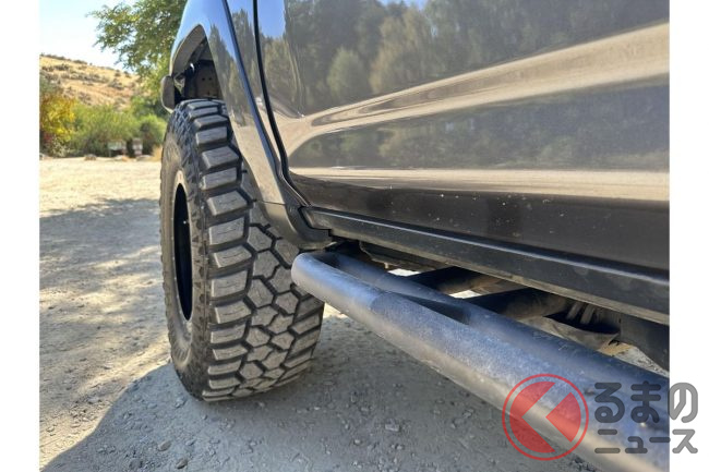 足元には、Stealth Custom Series社製17インチホイールにマッドテレーンタイヤが組み合わされています。