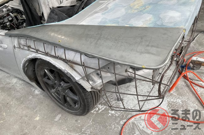 今回、製作している「MAZDA RX3 CABRIOLET」は、かつてマツダが販売していた「サバンナGT(輸入名:RX-3)」をオマージュしたような丸目4灯かつメッシュグリルが特徴的なデザインです。