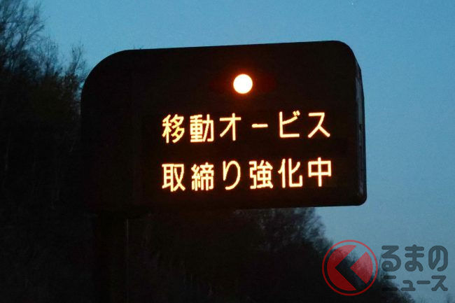 筆者オービスガイド 大須賀克巳がオービス調査中にも、道内の各地で「移動式オービス取締り強化中」の文字が電光式の道路情報板に昼夜問わず表示されていました。