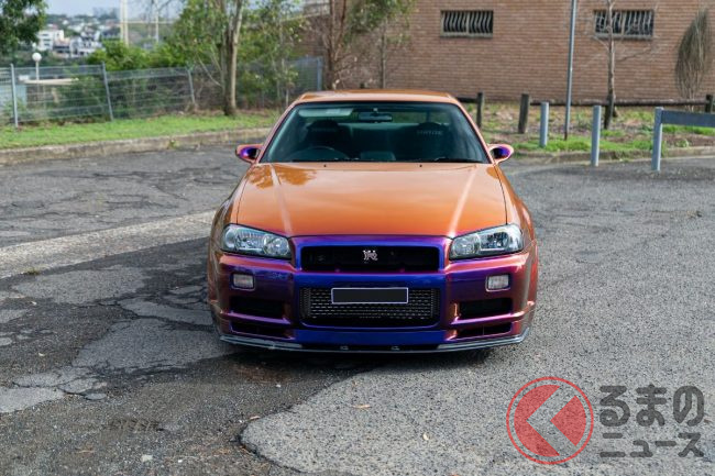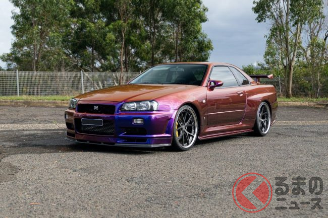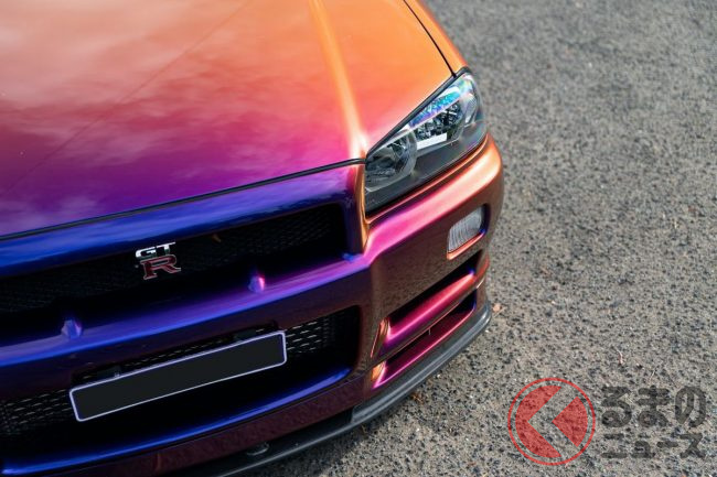 ちょ!?ド派手な2000万円の「スカイラインGT-R」発見! 見る角度でムラサキ? アオ? 玉虫色に輝くボディが凄い! オーストラリアで発見された個体とは