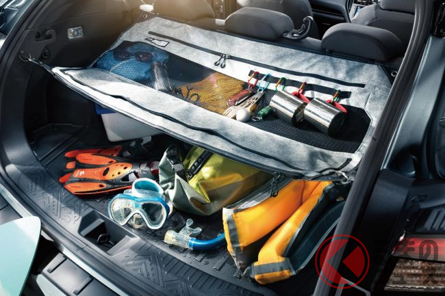 内装のアクセサリーとして、ラゲッジスペースを自在に区切ることができる「4Wayカーゴストレージ」を用意。「カーゴカバーモード」「シートバックモード」「リヤゲートネットモード」「フロアモード」といった4つの使い方ができ、日常時や旅行、アウトドアまで、さまざまなシーンでラゲッジスペースの使い勝手を高めます。