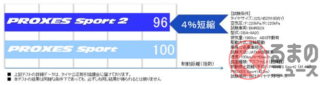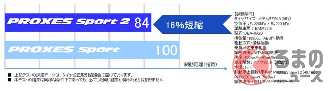 トーヨータイヤはPROXES Sport 2について、「当社は、ドイツ・ニュルブルクリンクで開催される耐久レースをはじめとするモータースポーツへの参戦を通じて、過酷な条件の中から得た知見を商品開発へフィードバックしています。このたび発売するPROXES Sport 2はこうした経験を生かし、スポーツタイヤに求められるハンドリング性能とブレーキ性能を高次元で実現させたプレミアムスポーツタイヤです」としています。