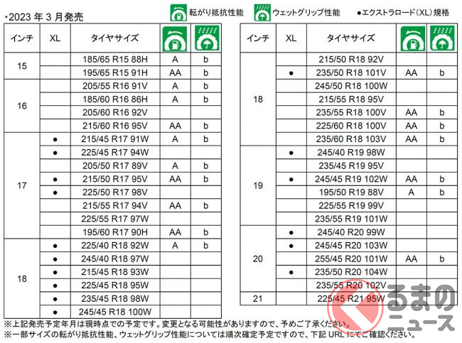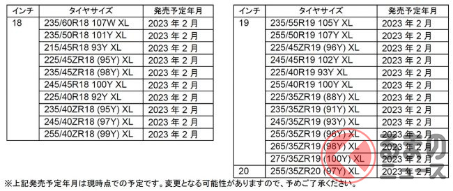 「PROXES Sport 2」は18インチから20インチまでの全23サイズで2023年2月、「PROXES Comfort II s」は15インチから21インチまでの全39サイズで同年3月の発売を予定しています。