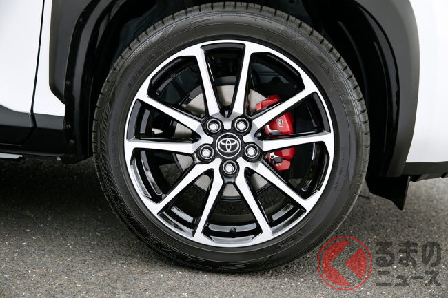 足元にはスポーティな18インチのアルミホイールを採用し、フロントブレーキにはGRロゴが付いた赤いブレーキキャリパーを装備。専用タイヤを装着することで運動性能向上を図っています。