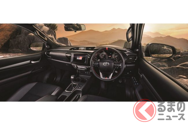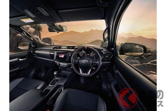 走行性能面では、最高出力209馬力の高性能2.8リッター直列4気筒ディーゼルエンジンや、シーケンシャルシフトとパドルシフトを備えた6速AT、高剛性なモノチューブタイプショックアブソーバー、GRレッドカラー塗装のGRブレーキなどを採用し、通常のハイラックスと比較してスポーティかつ快適さと適度なステアリングレスポンスを実現しています。