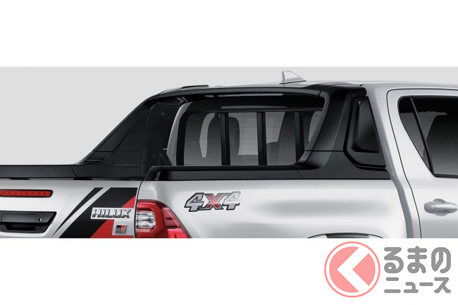 また荷台部分には、日本仕様とは異なるGRスポーツバーが取り付けられ、その上にシャークフィンアンテナが取り付けられています。