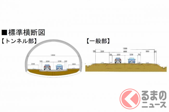 開通する道路は2車線(片側1車線)、幅員は14.5~30.0mです。