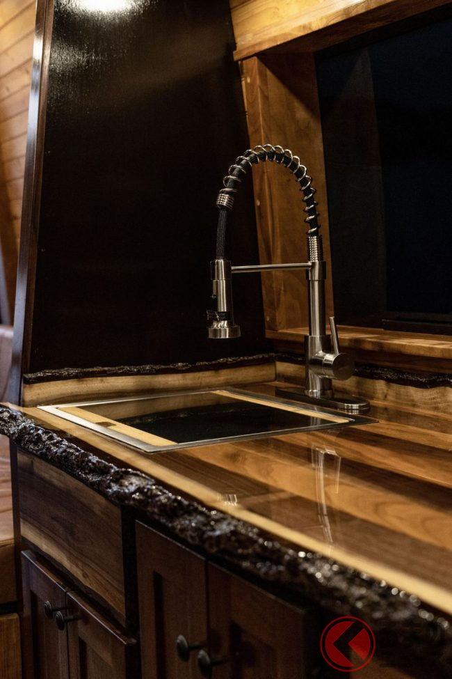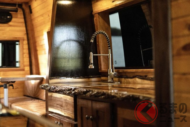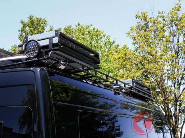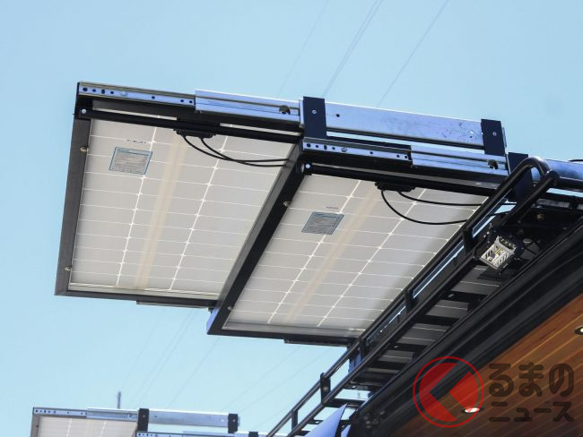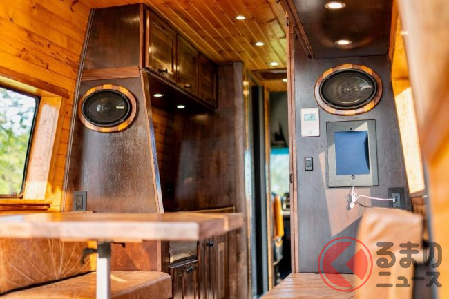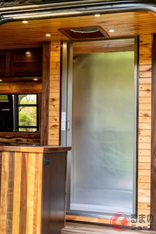 車内の装備もまさに別荘と呼べるもので、ベッドやシンク、トイレ、冷蔵庫に加えてシャワーやストーブまで備える豪勢なもの。さらに屋根には停車中に展開が可能な12枚以上のソーラーパネルを装備しており、宿泊に必要な電力を自家発電で補う事が可能です。