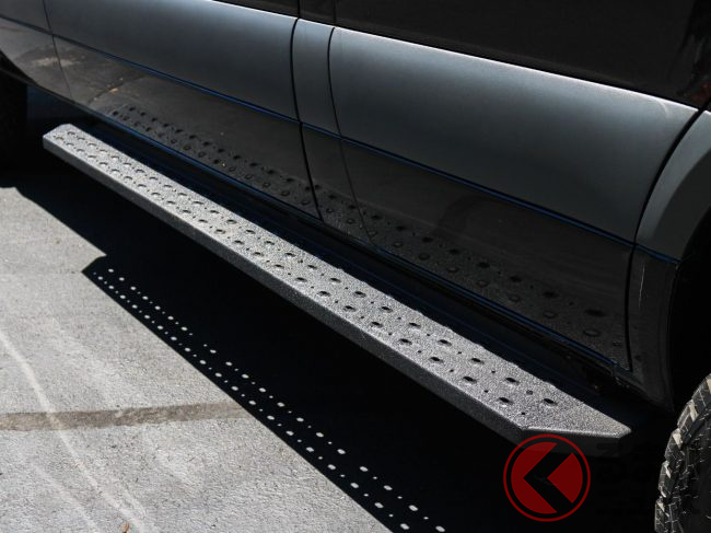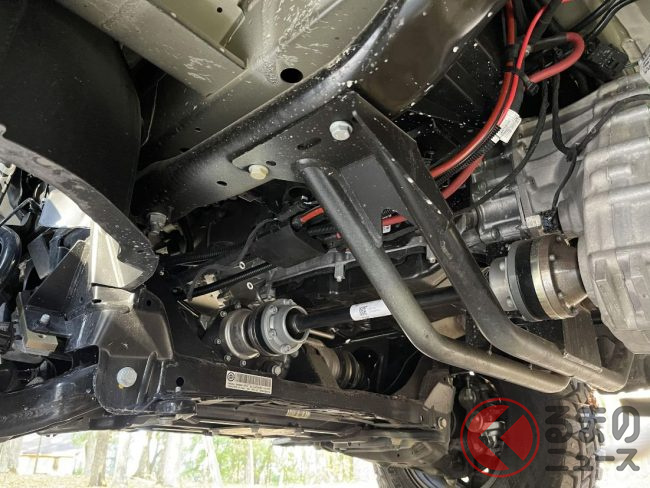 悪路走破性を高めるオフロードタイヤとサスペンションを装備し、ルーフに搭載したラックや補助灯も備えたこともあり、迫力のある外装となっています。