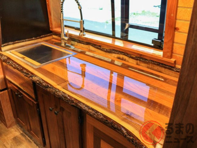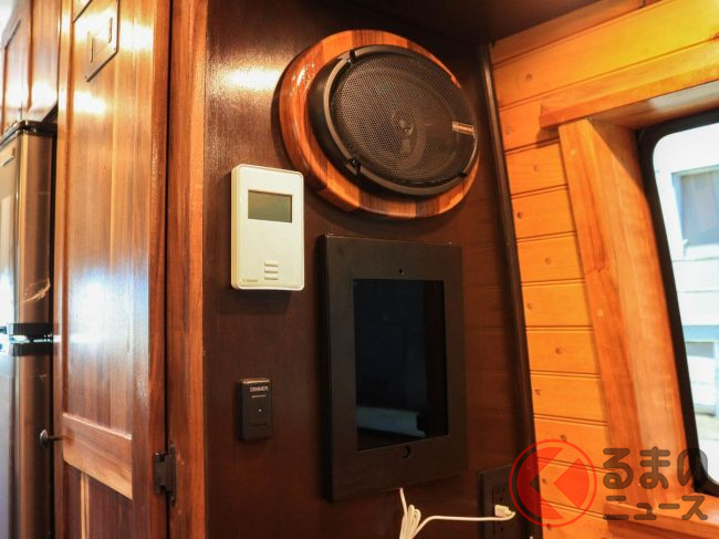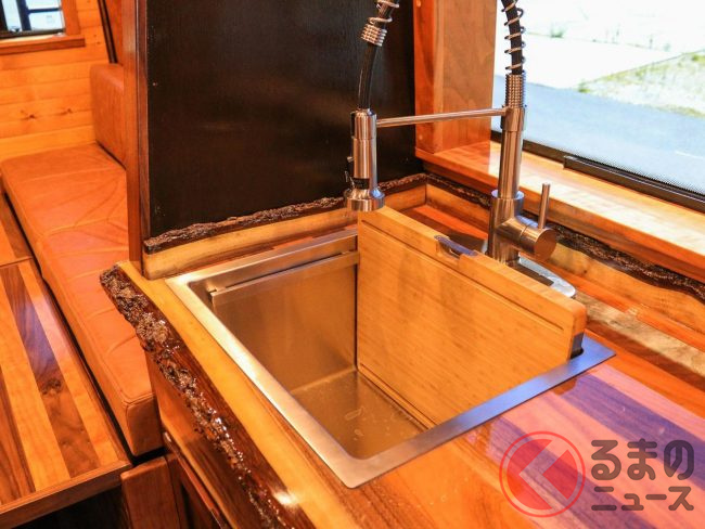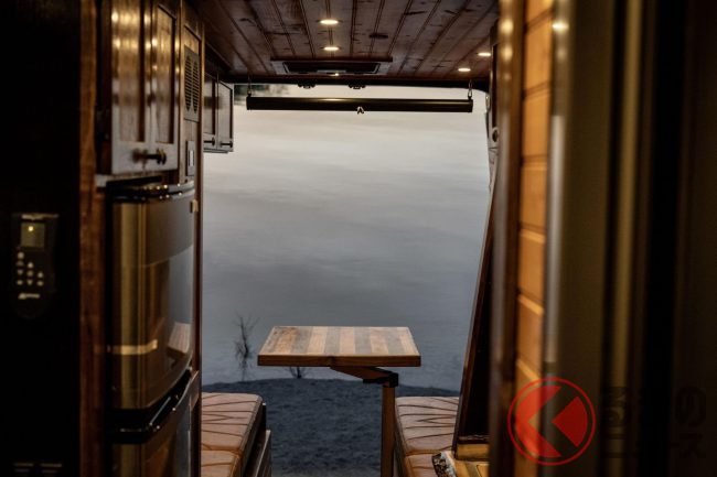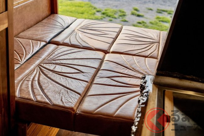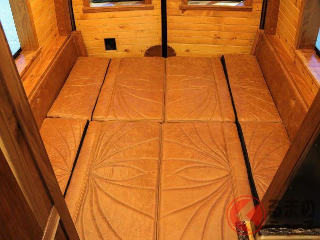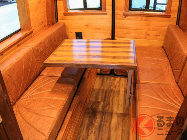 一方インテリアは、茶色の本革張りのシートやソファ、クルミ材やサクラ材で作られた豪華な家具などが用意され、もはやペンションのような落ち着いた雰囲気で、ハイクラスの別荘の一室を思わせます。