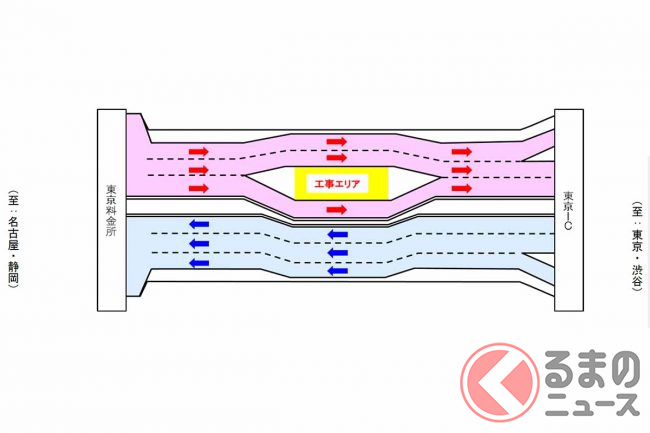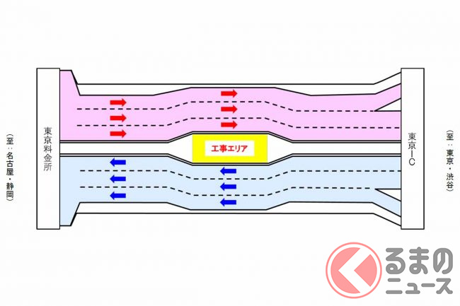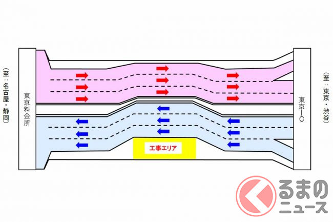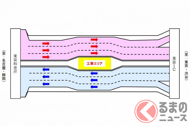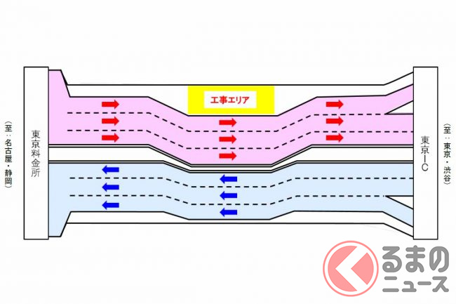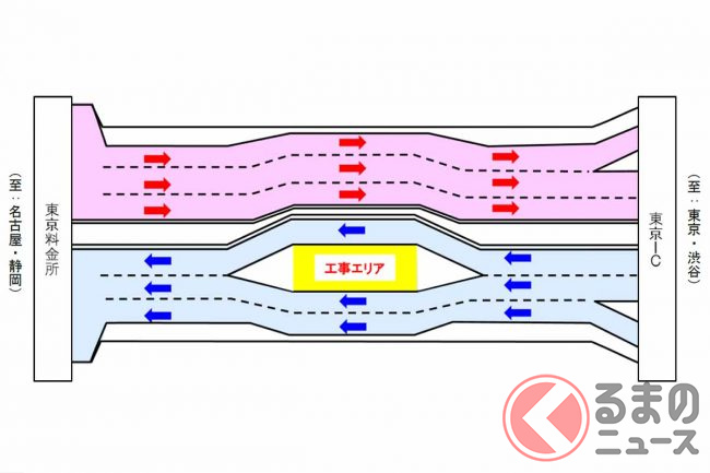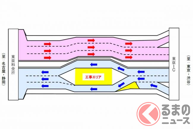 東名高速が突然「ぱっくり分裂」! なぜ道路の真ん中を工事? 東京料金所付近で進む長~い工事の正体とは