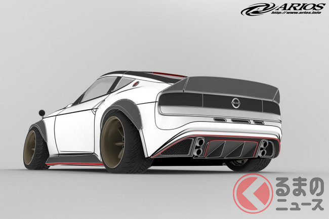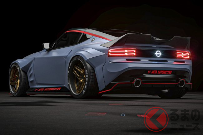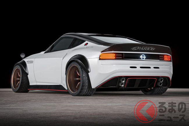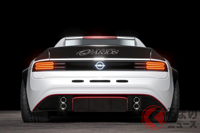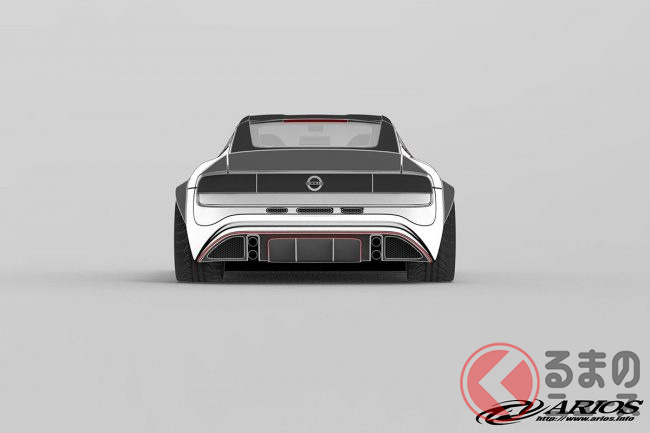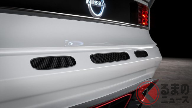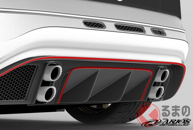 リアデザインでは、中央部にフロントからの流れを受けたスピンドル形状のテーマを採用するほ、テールランプ外側から縦下方向に伸びたウインカーやマフラーディフューザーの左右下端の配置と合わせ、ロー&ワイドを強調しました。