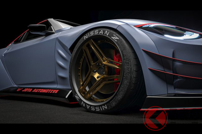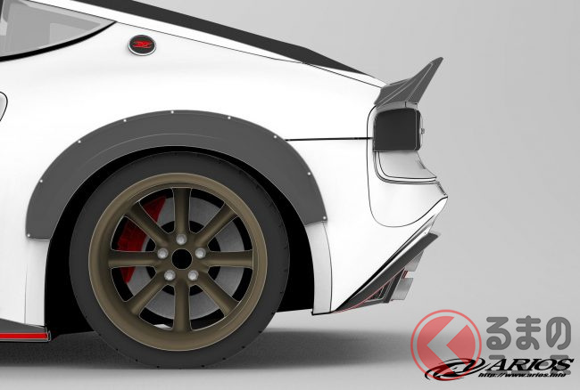 サイドは、大きく張り出した前後のオーバーフェンダー、サイドスカートに加えてスポーティホイールが存在感を付与しています。