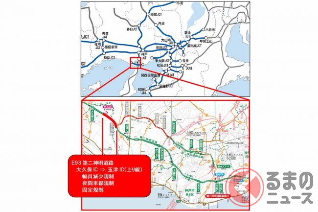 第二神明に付加車線設置へ 玉津IC~大久保IC間で交通規制 あわせて垂水JCT直結ルートも建設中