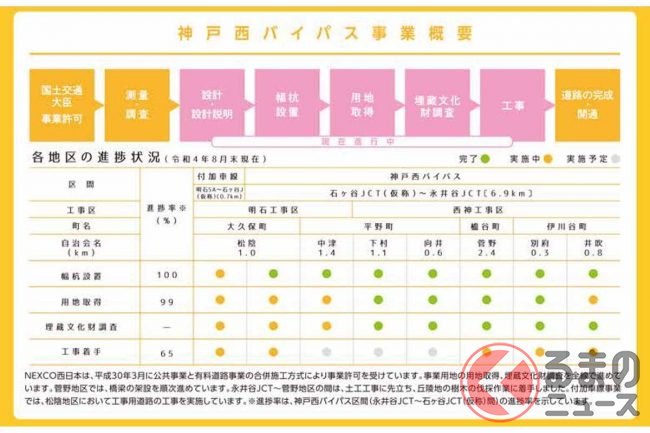 全線が開通すれば、明石・姫路方面と垂水JCTが直結し、神戸淡路鳴門道へのバイパスルートが完成します。
