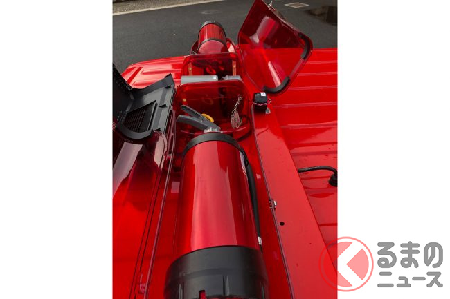 なお、赤色灯のように見える部分には半透明のカバーのついた消火器が備わっており、積載品として法令にも準拠しているとのことです。