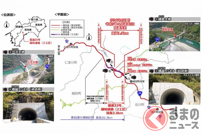 高知~松山の道が改善! 国道33号越知道路の「横畠トンネル」2023年6月頃までに開通へ
