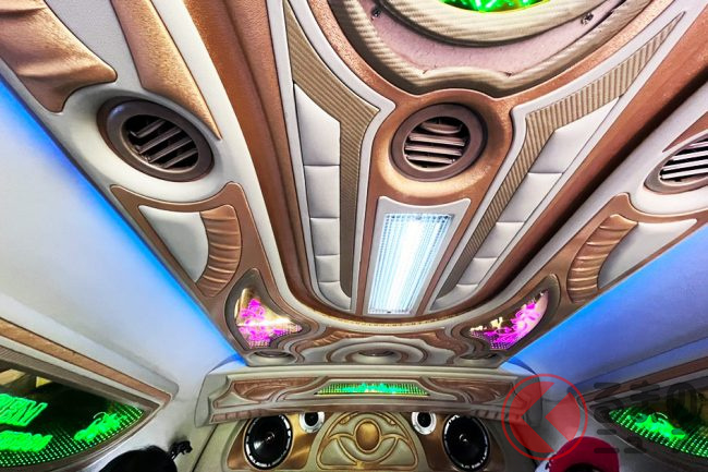またタイには独自に内装をカスタマイズした仕様が数多く存在。送迎に使われるハイエース/ベンチュリーはとにかく派手な加飾が施されており、今回乗車した仕様も豪華な表皮のシートやルーフ部は金色に塗られ、きらびやかなデザインを採用していました。