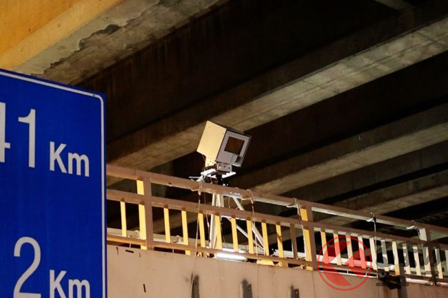 現地へいって見ると歩道橋の上にそれらしき機器が設置されていました。よくNシステムを固定式オービスと間違えるドライバーも多くいますが、この機器も一般ドライバーからしたら間違えて当然の見た目をしています。