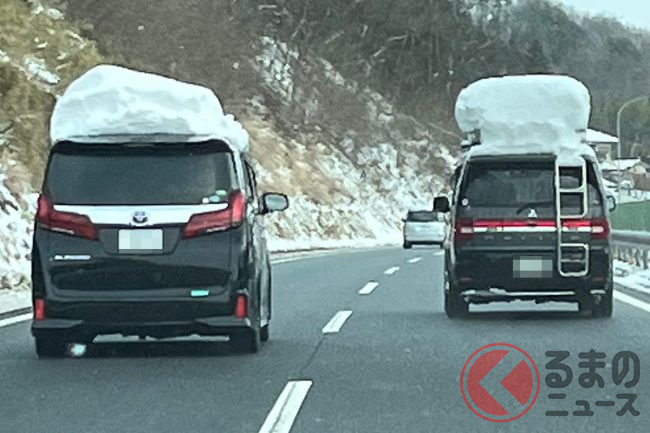 たまに見かける?ルーフに雪を載せたまま走行する「雪載せ車」 何が危険? 一部では違反に