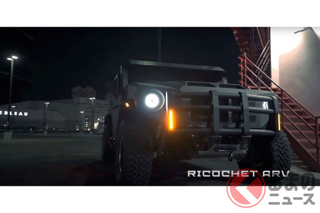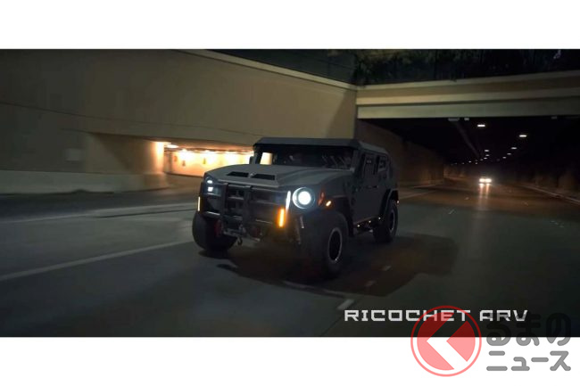 発表された「RICOCHET ARV」は、アメリカの軍用車両「ハンヴィー」やその民生モデルであるハマー「H1」をベースに、ボディやサスペンションなど各所に改良を加えたモデル。