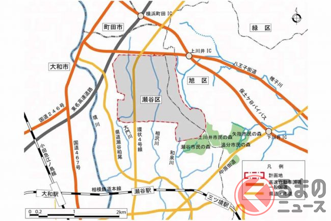 横浜市が「旧上瀬谷通信施設土地利用基本計画デザインノート(案)」を公表。近くを通る東名高速は、直結する新たなICについて具体的な検討を進めるといいます。