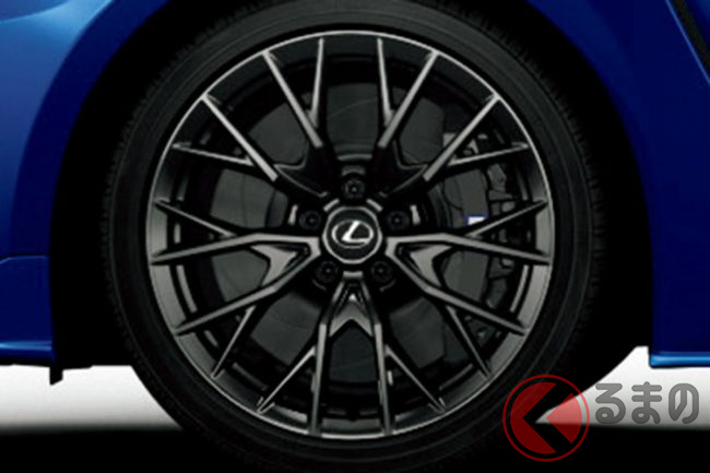 ホイール取り付けのハブボルト化にともなって、RCでは「F SPORT」グレードにエンケイ社製ホイールを設定。RC Fも新デザインの鍛造アルミホイールが採用されています。