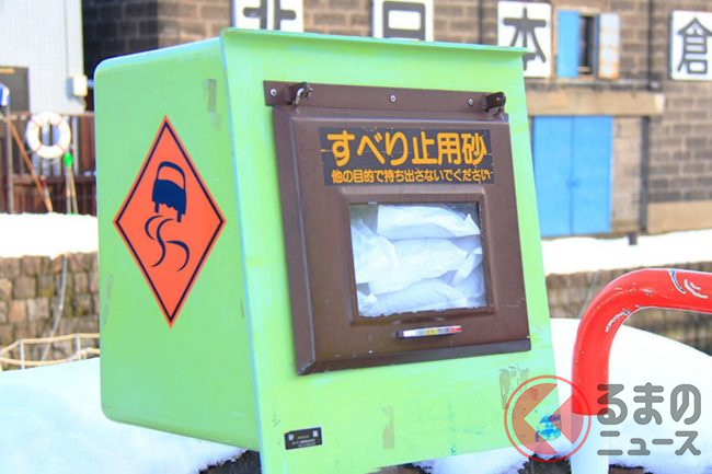 目の前の道路が雪&凍結、どうする? 雪国&都会関係ない! 道脇にある「砂箱」を使うべし! 実際にどう使うのが適切?