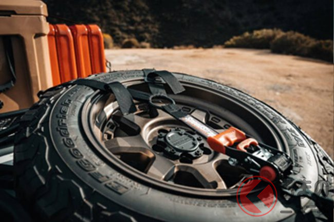 完成したその姿は、制作のきっかけとなったイメージCGをも上回る存在感のあるデザインとなり、装着された215/65Rサイズの極肉厚16インチオフロードタイヤは悪路での走破力を遺憾なく主張しています。