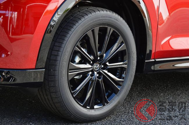 外観はフロントグリルやシグネチャーウィング、バンパー下部、ドア下ガーニッシュ、ホイールアーチ、ドアミラーを深い光沢のあるブラックで統一したほか、ブラックメタリック塗装の19インチアルミホイールを装着する点はCX-5/CX-8で共通です。