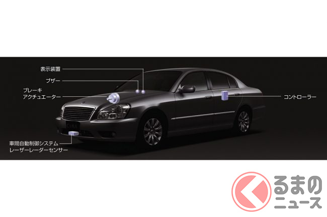 国産車初の自動ブレーキ機能付き車間制御機能システム(以下車間制御)は1999年7月、日産の高級セダン「シーマ」3代目モデルに追加された最上級グレード「41LV-Z」に搭載されました。