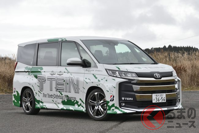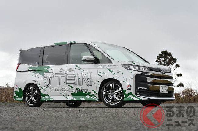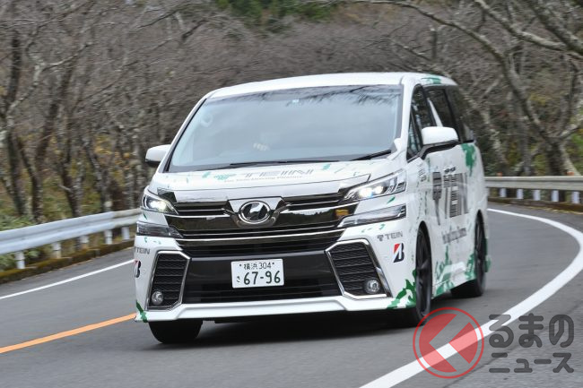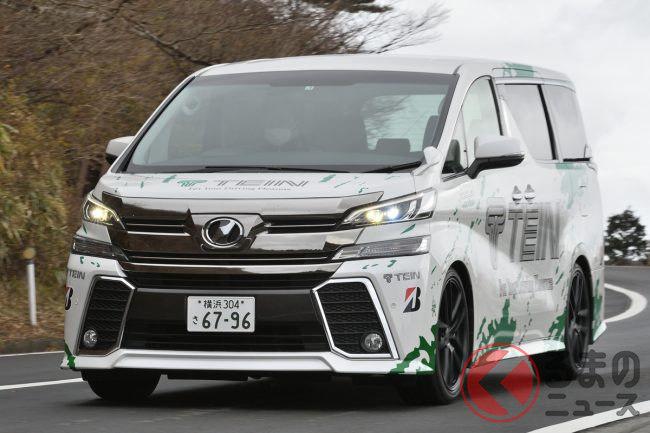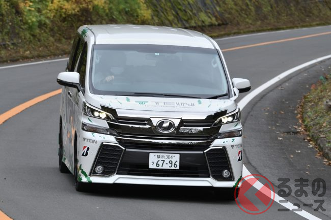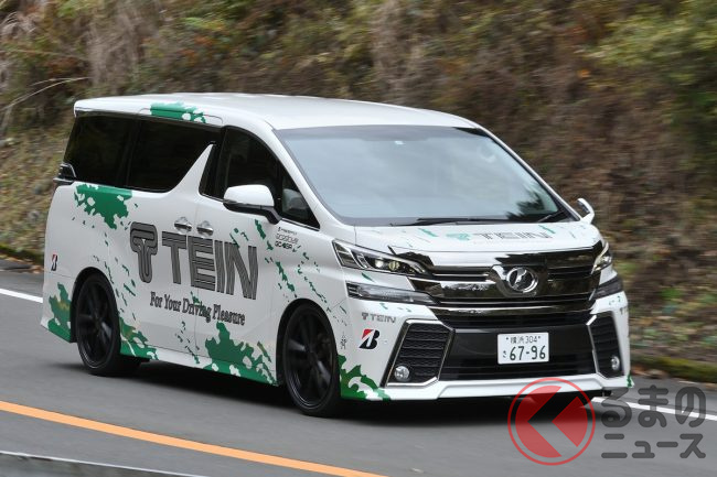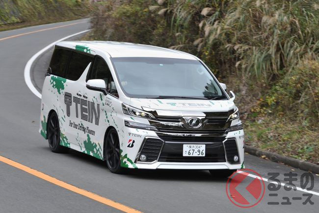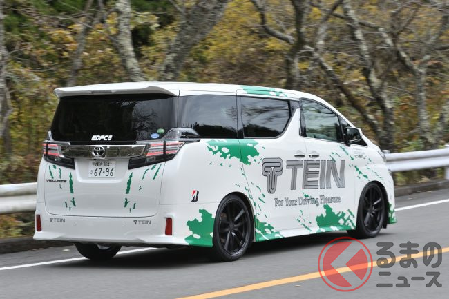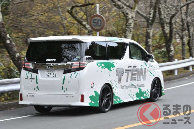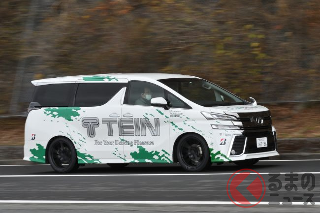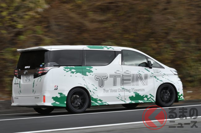 ともにテイン製「RX1」車高調キットが装着されており、ヴェルファイアは前後とも45mm、車高が下げられ20インチタイヤを装着、ノアは前40mm後50mmの車高ダウンに18インチタイヤを装着と、いずれもローダウン、インチアップというセットです。最初にヴェルファイアから試乗しました。なお、以下は運転歴15年の編集部員による個人の感想になりますので、あらかじめご留意ください。