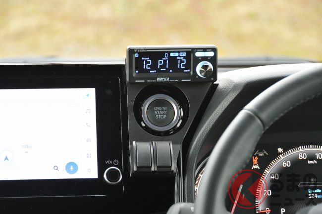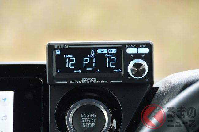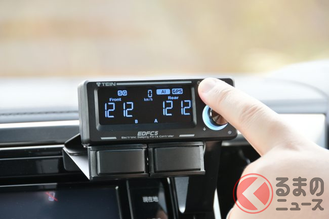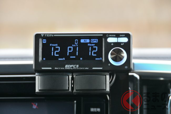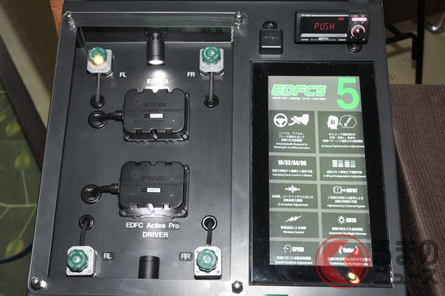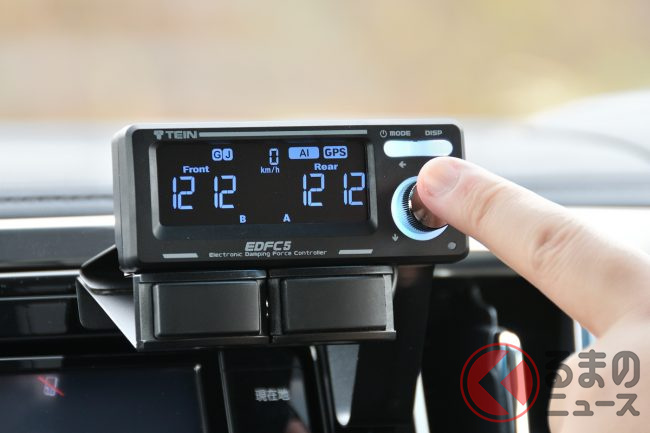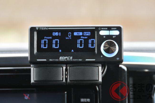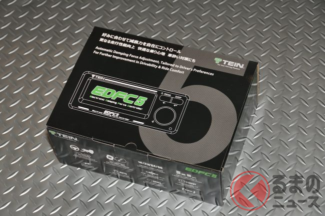 自動車用サスペンションメーカーのテイン(神奈川県横浜市)が手掛ける「EDFC」は、同社製のサスペンションと組み合わせることで、車外に出ることなくシートに座りながらスイッチ操作で減衰力の調整ができるコントローラーです。2002年に初代が登場し、以後進化を続けてきました。