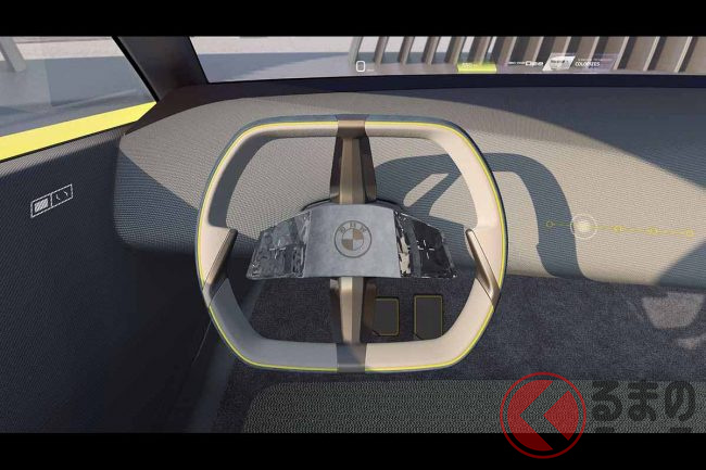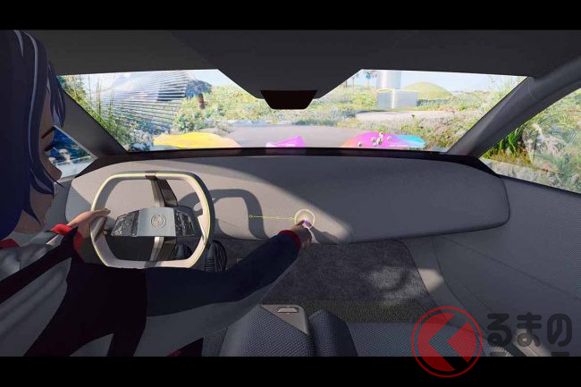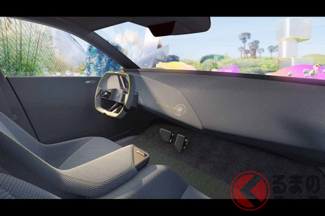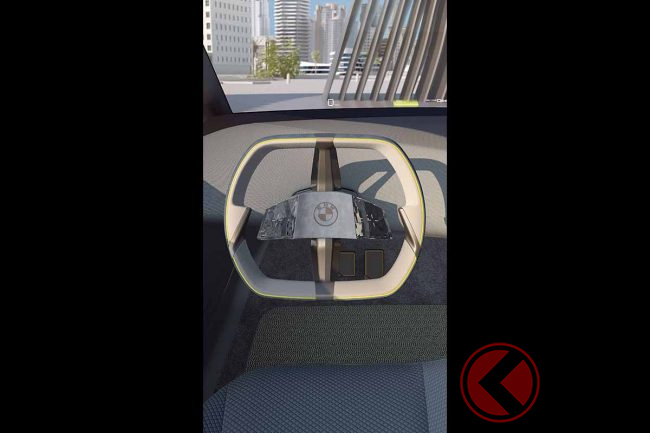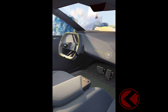 なお、内装自体はこれらのデジタル体験に没入できるよう、あえて簡素化されました。ハンドルは中央に縦長のスポークを配した斬新なデザインで、近付いたり触れたりすると、親指で操作できるタッチポイントが浮かび上がります。これらのタッチポイントは、フロントスクリーンに映し出されるコンテンツ選択などの操作に使われ、「手はハンドルに、目は道路に」の原則をサポートします。