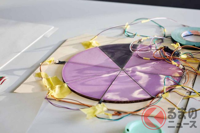 ボディには、E Ink社の電子ペーパーフィルムを240のセグメントに分割して貼っており、セグメントごとに色を設定できます。これにより、ほぼ無限のパターンを数秒のうちに生成し変化させることが可能といいます。